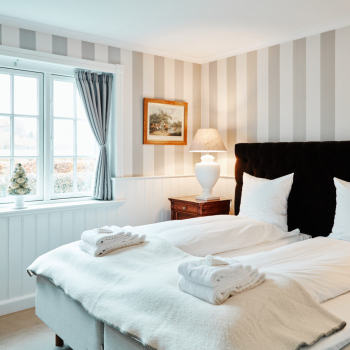 Vores eksklusive og atmosfærefyldte værelser er elegant fordelt på godsets område og indrettet med deluxe-senge fra blandt andet Englesson, der sikrer optimal komfort.